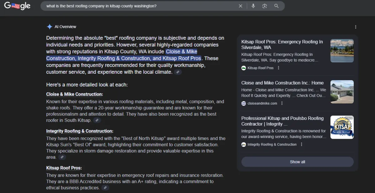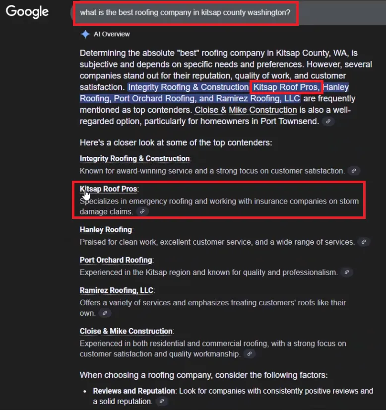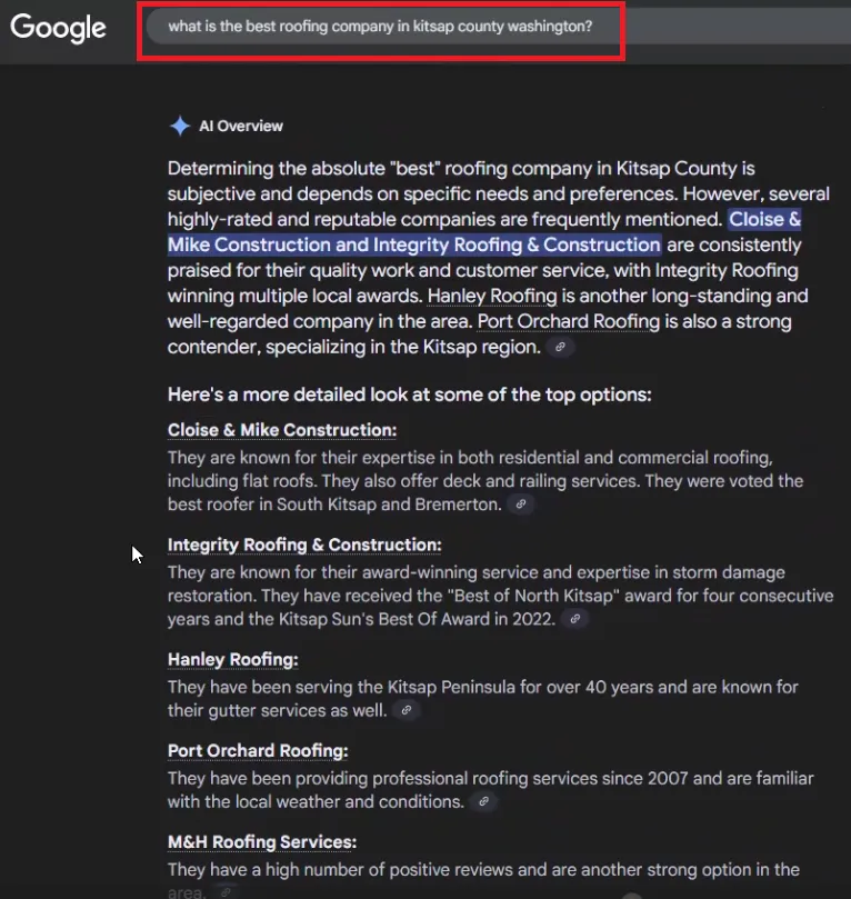 Depending on the plan you select, we will get you in Google's A.I. search results for a particular keyword or service and location. That counts as one. For example, if you are on the 3 keyword/service and location plan, you could get "What's the best ac repair company in Cullman, Alabama?", "What's the best ac repair company in Hartselle, Alabama?" and "What's the best ac repair company in Decatur, Alabama?" That would count as 3. Or you could do "What's the best AC company in Cullman, Alabama?", "What's the best AC replacement contractor in Cullman, Alabama?" and "What's the best HVAC contractor in Hartselle, Alabama?" that would be 3. You can mix or match locations and services/keywords, but the combination will not exceed 3. We suggest using a top level keyword/service, such as AC Company, and then your main core services. This is because frequently you are going to get in the A.I. results for other services when you use a top level keyword.